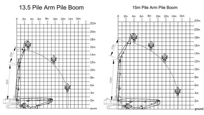 | Excavator Model (ton) | Total Length of Pile Arm Pile Boom (m) |